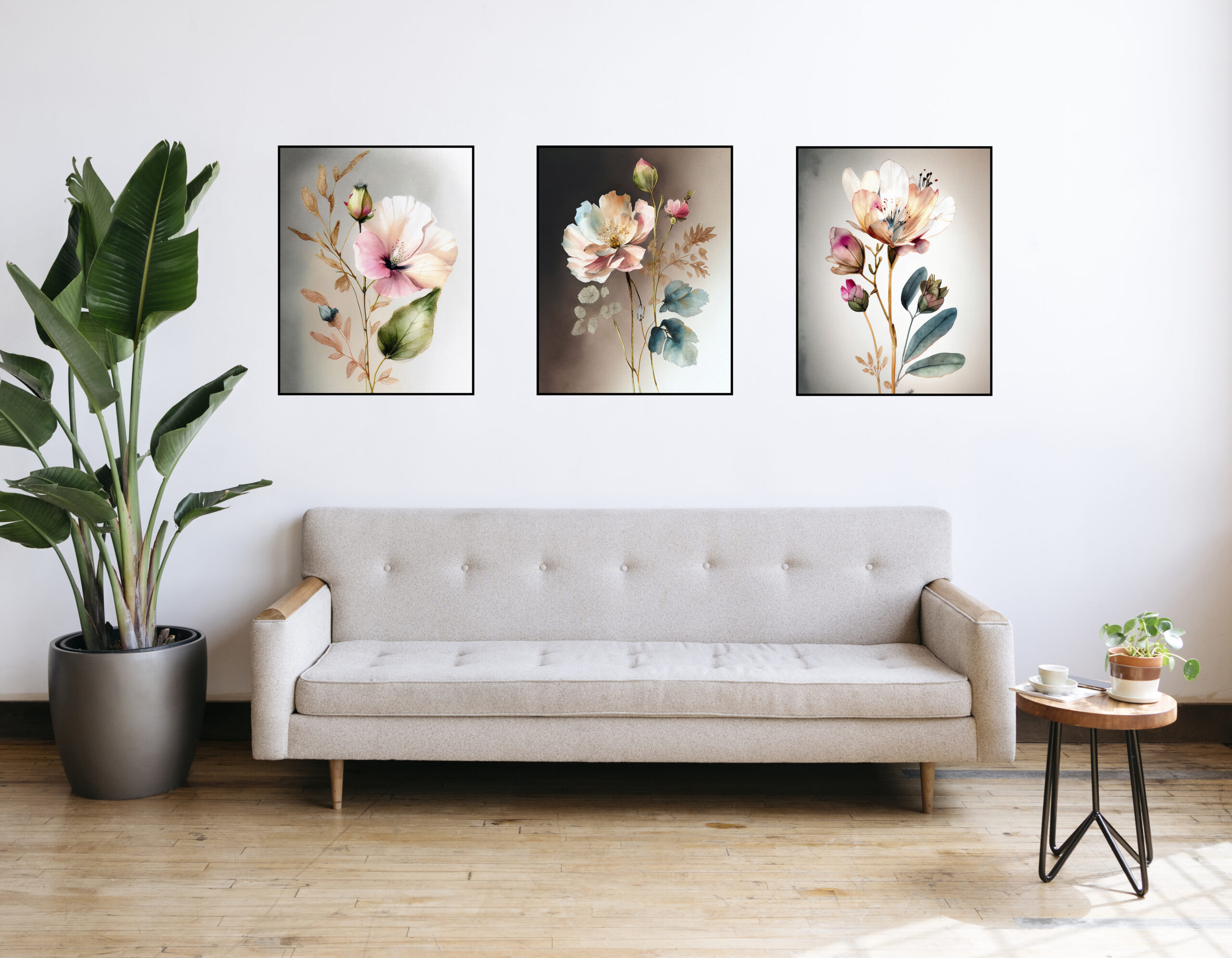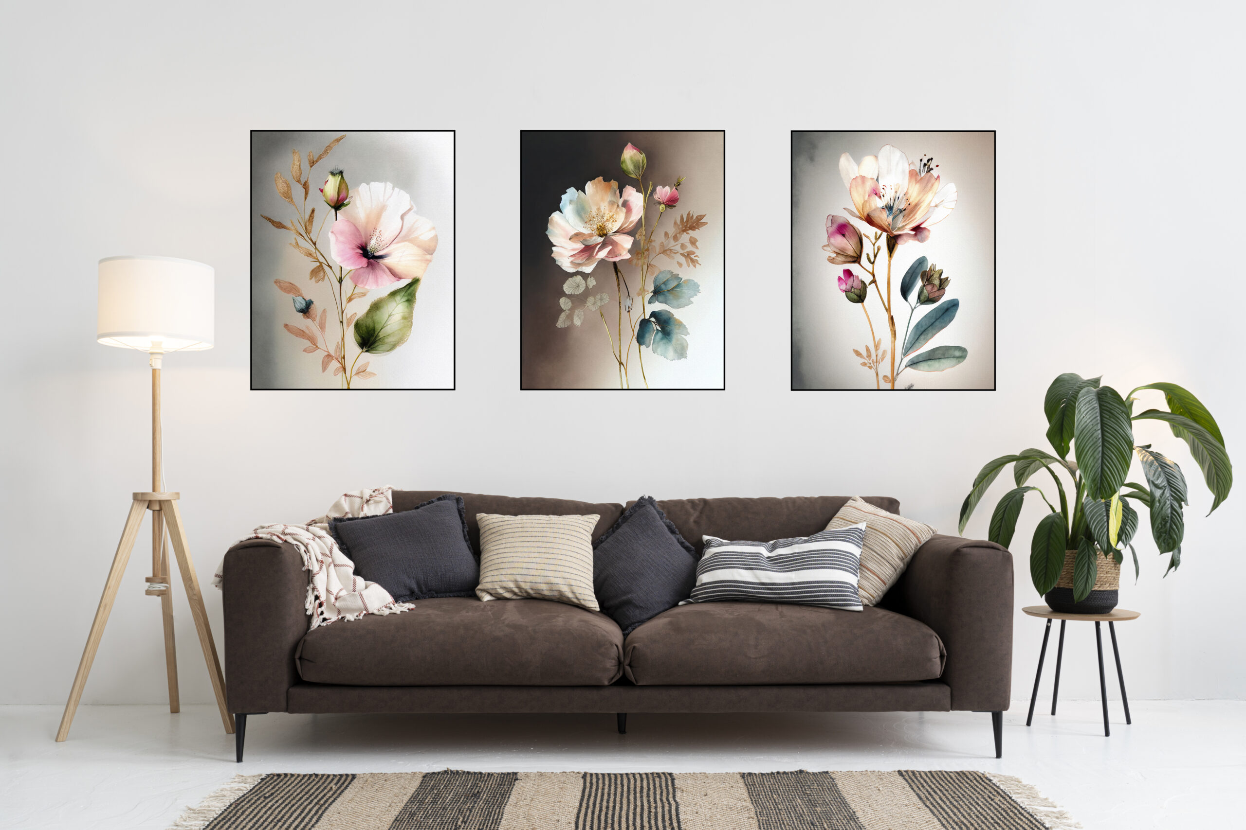 Cvjetna umjetnost – dizajnirani komplet -3 plakata za zid, buket 5