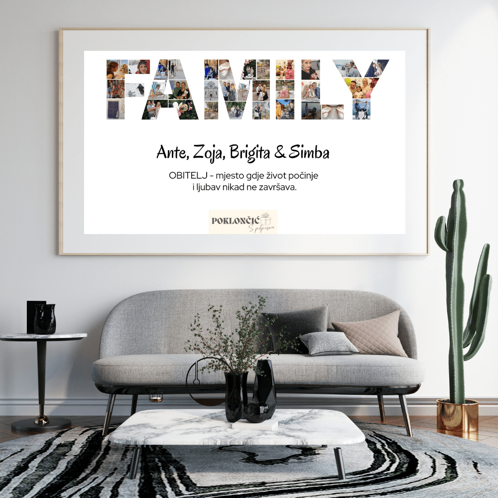 Unikatni Foto spomenar- Familly dizajniran je od vaših obiteljskih fotografija. Ukrasite vaš interijer predivnim fotografijama i neka vaš pogled na naš dizajn bude magična uspomena na predivne trenutke. Ili poklonite dragim osobama dizajn sa njihovim fotografijama kao poklon za: vjenčanje, rođendane, godišnjice i druge prilike.