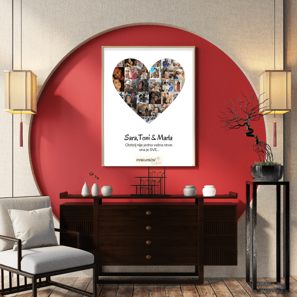 Unikatni Foto spomenar- Heart dizajniran je od vaših obiteljskih fotografija. Ukrasite vaš interijer predivnim fotografijama i neka vaš pogled na naš dizajn bude magična uspomena na predivne trenutke. Ili poklonite dragim osobama dizajn sa njihovim fotografijama kao poklon za: vjenčanje, rođendane, godišnjice i druge prilike.