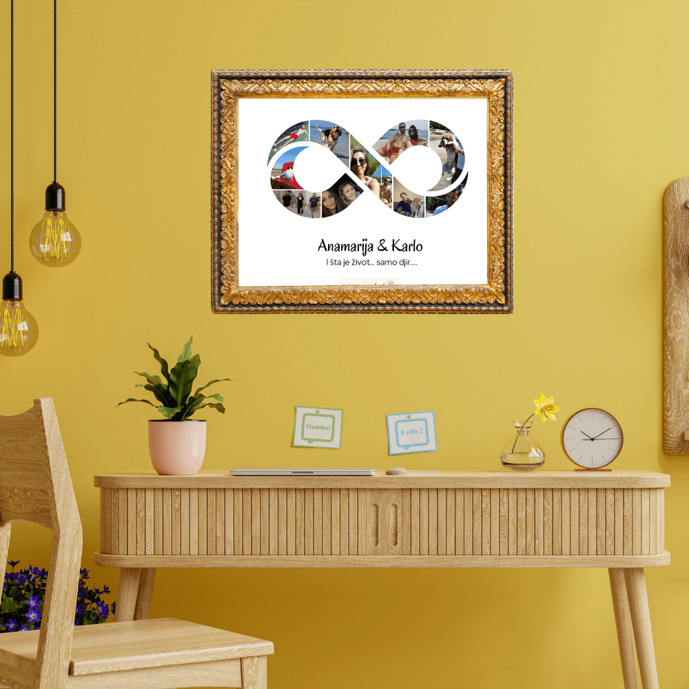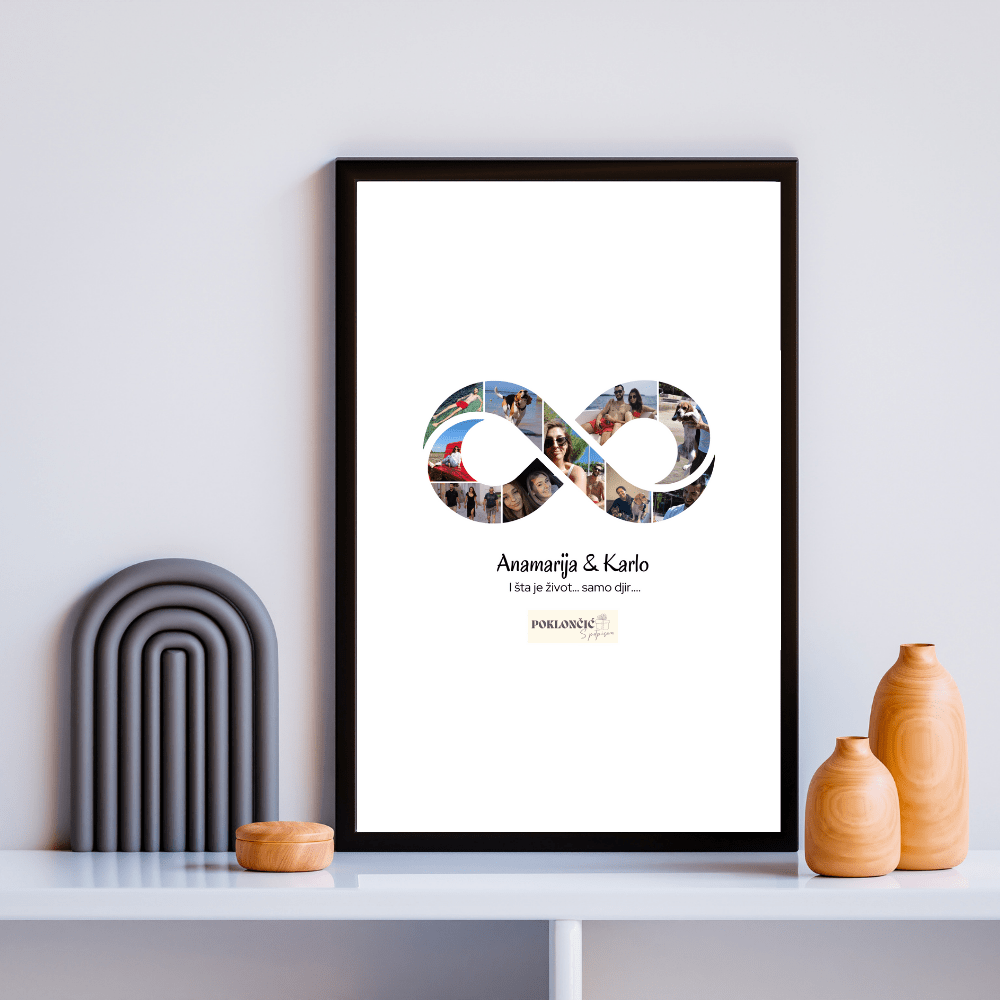 Unikatni Foto spomenar- Infinity dizajniran je od vaših obiteljskih fotografija. Ukrasite vaš interijer predivnim fotografijama i neka vaš pogled na naš dizajn bude magična uspomena na predivne trenutke. Ili poklonite dragim osobama dizajn sa njihovim fotografijama kao poklon za: vjenčanje, rođendane, godišnjice i druge prilike.